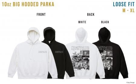 - アートワーク “NIGHTCLUB” を大胆にプリントしたTシャツやスウェットなど。日常で着られる"アートピース"として展開します。